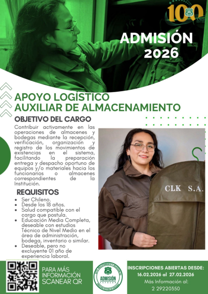 Carabineros de Chile abrió proceso Nacional de postulaciones para cargos de Apoyos Logísticos, los cuales son para formar parte de la Planta Institucional en diversas áreas tales como: Auxiliar de Almacén, Conductores de Vehículos, Garzón, Mantención de Cuarteles, Mecánico Automotriz y Rancheros; todos ellos ya disponibles para concursar a través de la plataforma postulaciones.carabineros.cl.
