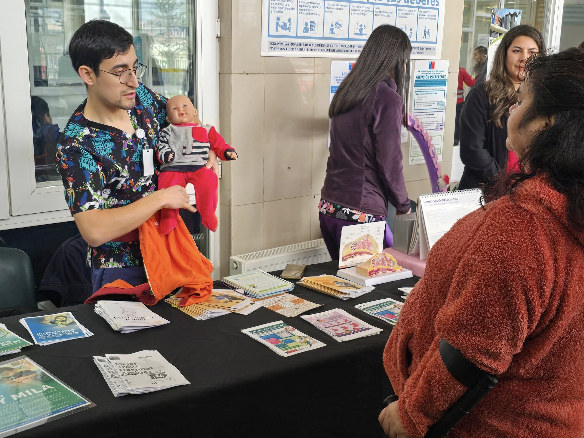 Como parte de la programación, se instalaron stands informativos en el hall de acceso del hospital, donde profesionales del recinto entregaron orientación y material educativo a las personas que transitaban por el lugar. La iniciativa tuvo como propósito destacar los múltiples beneficios de la lactancia materna, tanto para el recién nacido como para la madre.