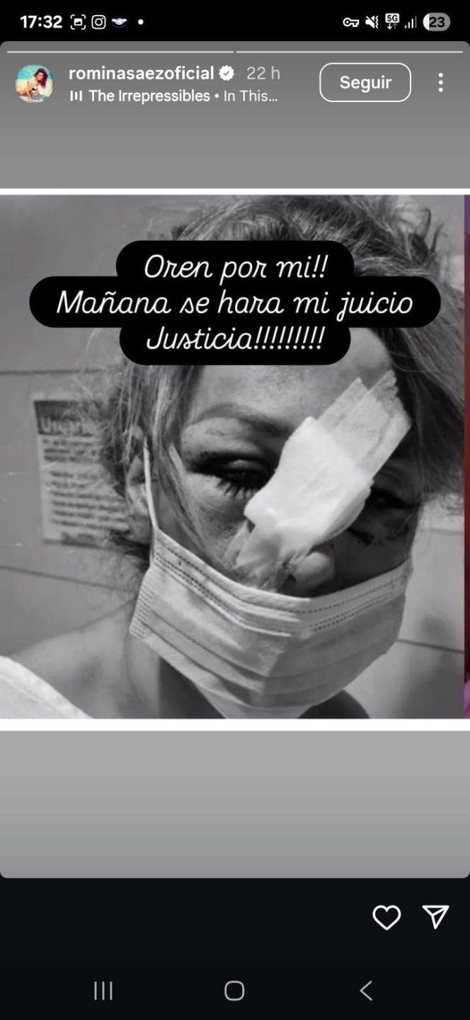 La exchica Mekano utilizó sus redes sociales para compartir una impactante imagen de su rostro tras la agresión y pedir apoyo en este momento clave: “Oren por mí. Mañana se hará mi juicio. Justicia”, escribió junto a la foto que muestra las consecuencias del ataque.
