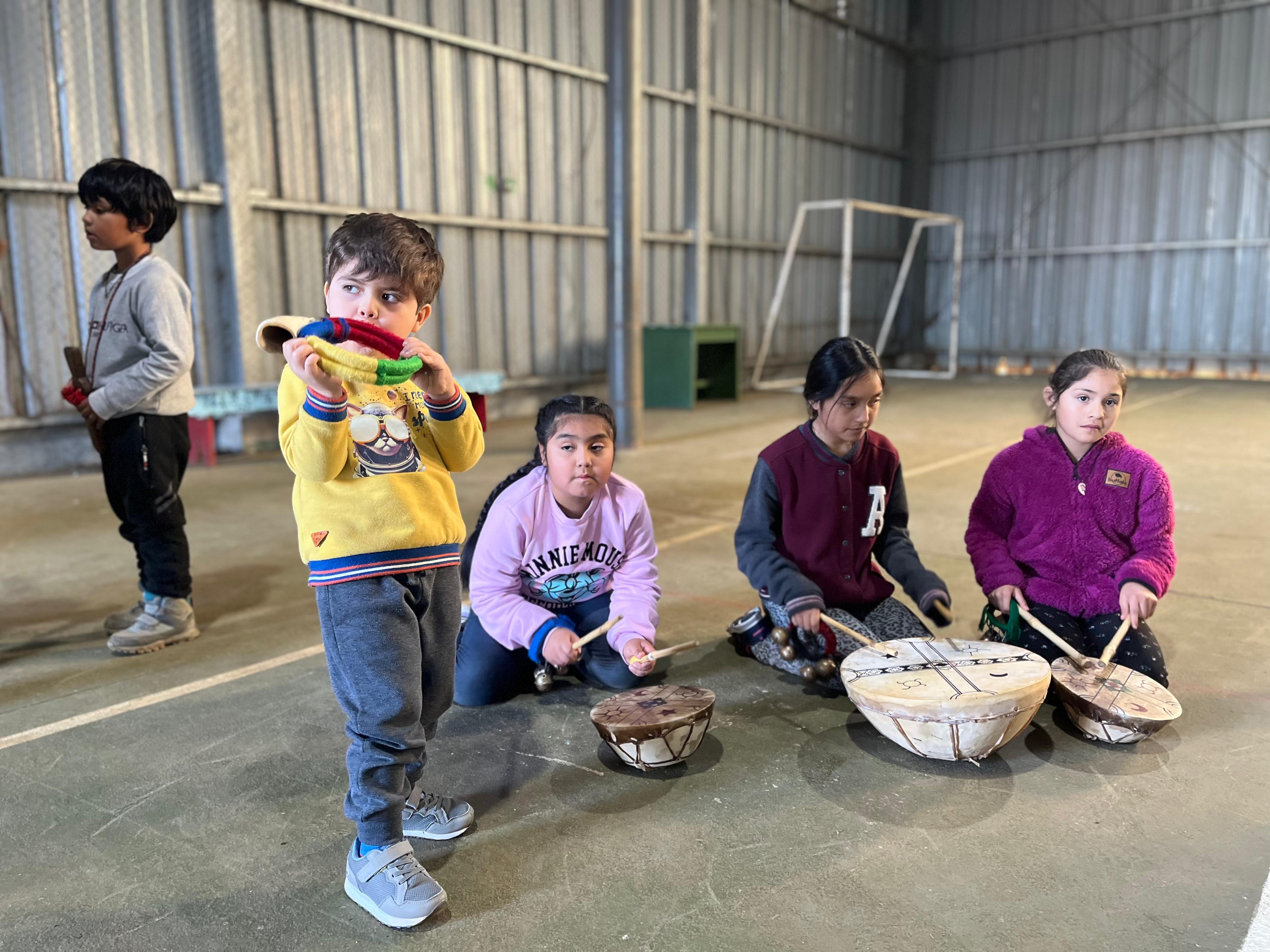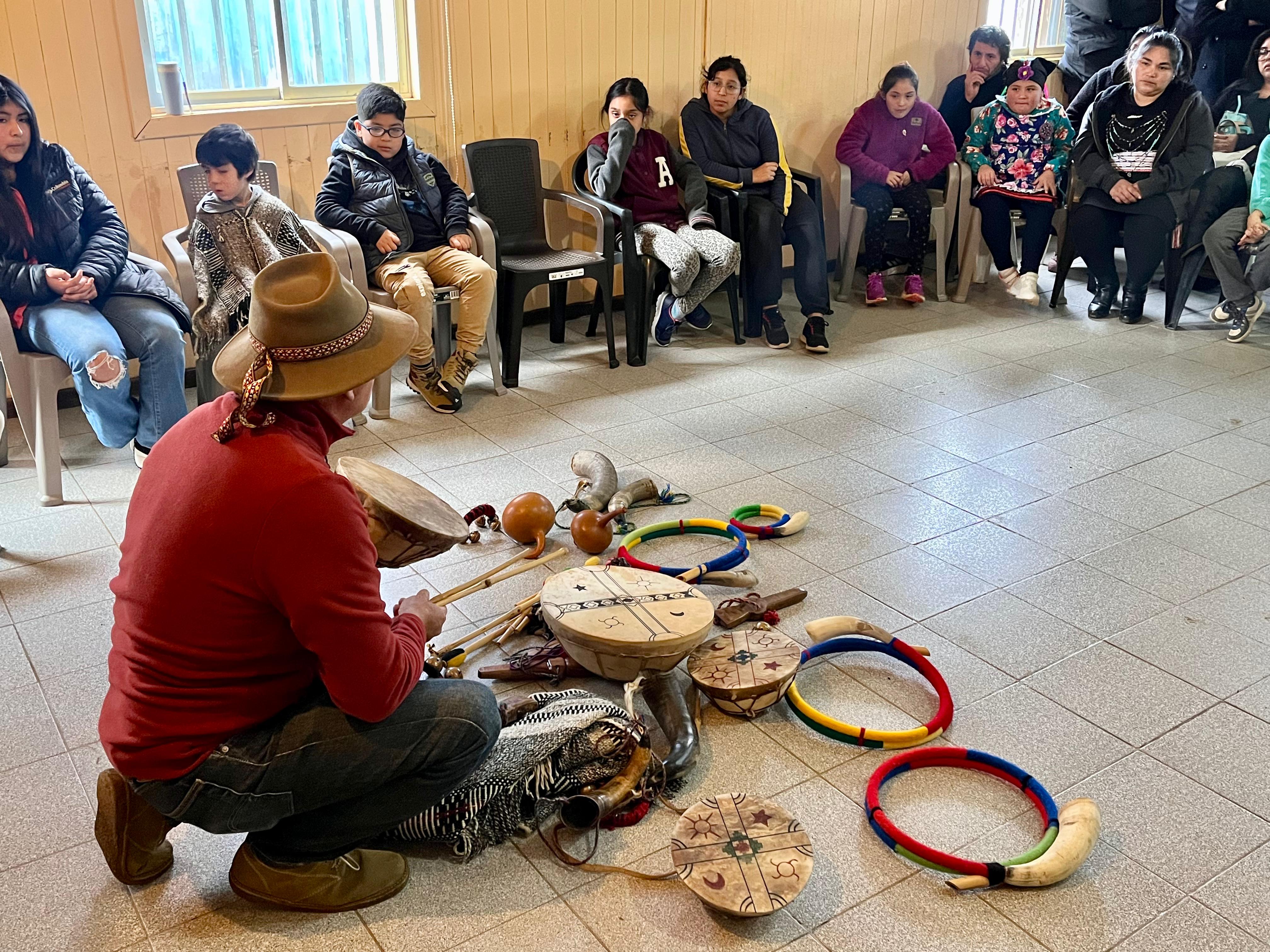En las dependencias de la sede Villa El Bosque, y bajo la atenta mirada de los niños y niñas del barrio, el profesor Sergio Millacura entregó un taller en el que enseñó sobre la espiritualidad, la conexión con la tierra y tradiciones del pueblo indígena. Posteriormente, se invitó a los presentes a conocer y practicar con instrumentos musicales como el kultrún, trutruka y el trompe.