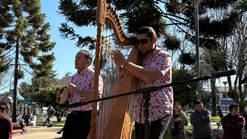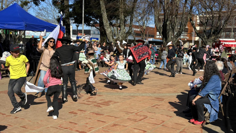 La Plaza de Armas de Arauco fue escenario del tradicional Esquinazo a la Patria, actividad que reunió a la comunidad en una jornada de cuecas, música y tradiciones chilenas.
