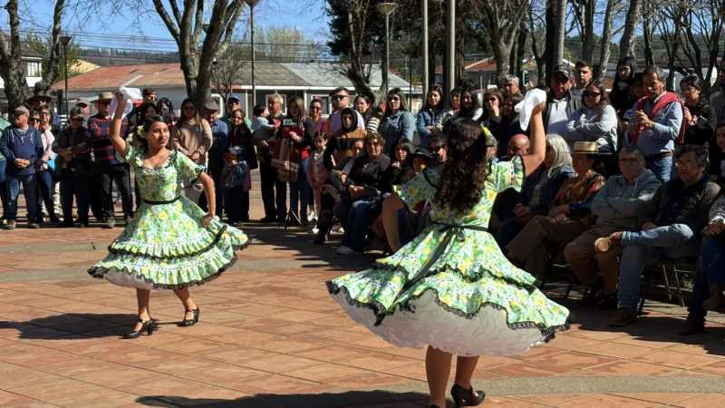 El Taller de Cueca Semillita Cuequera, dirigido por Mario Sáez Cartes, deleitó al público con sus coreografías folclóricas, mientras que se entregó un reconocimiento a la pareja de bailarines Boris y María Antonia, quienes representarán a la comuna en el Provincial de Cueca Escolar.