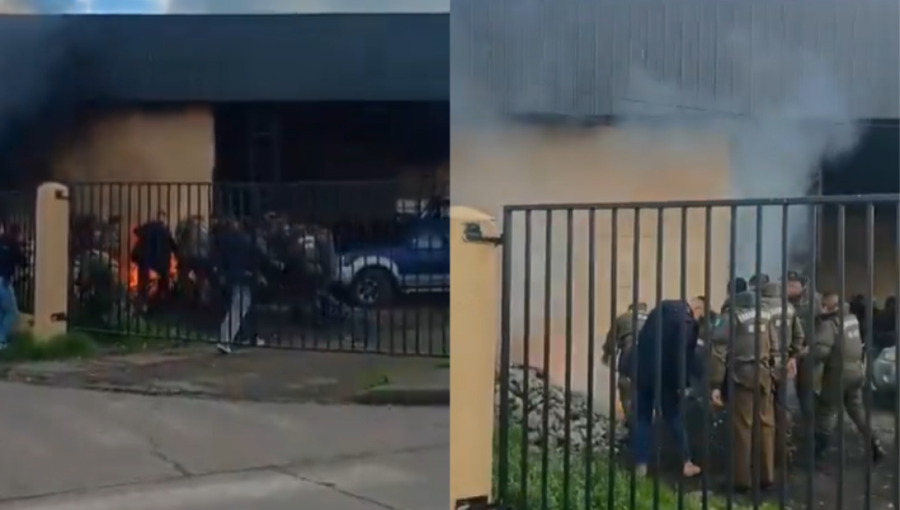 ( Precaución Video Sensible )#Victoria: Esta mañana un Hombre se prendió a lo Bonzo en el terminal de buses de la comuna de Victoria en la Araucania. Carabineros quien se encontraba en el lugar alertados por vecinos pudieron intervenir quedando algunos de ellos con quemaduras. pic.twitter.com/wXMe4dJBDu