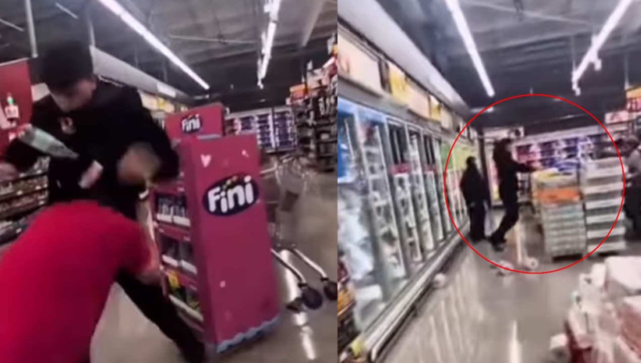 Una tensa escena captada en video ha generado una ola de reacciones en redes sociales. En el registro, un guardia de seguridad sorprende a un presunto mechero dentro de un supermercado, momento en el que se inicia un forcejeo que rápidamente se sale de control. El sujeto habría intentado escapar tras ser sorprendido, mientras amenazaba al funcionario, quien logró reducirlo a golpes en la entrada del local.